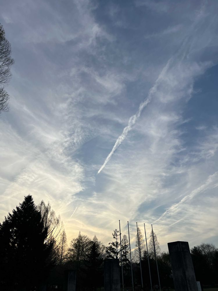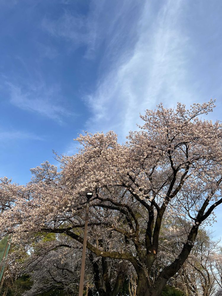 見上げるとサクラ🌸と✈️☁️