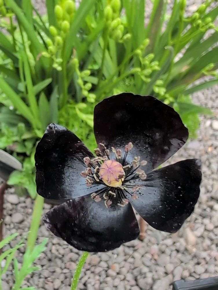 ブラックのお花とはまた珍しいお花ですね〜😳😳😳後ろに写ってる草姿はフリージアですかね?🙄ブラックポピーと言うからにはポピーの仲間なんですか?🤔草姿も拝見したいと思いました🤭