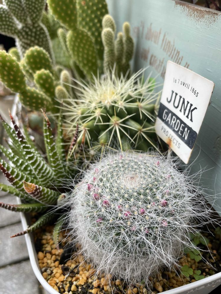 3月にupしたサボテンの寄せ植え🌵手前のサボテンにピンクの物を発見❗もしかして、お花が咲くのかしら…だったら初めてなので嬉しいなぁ🎶😊要観察しなきゃ😍