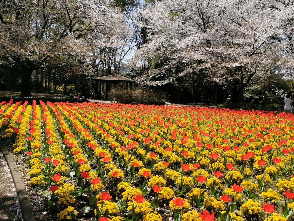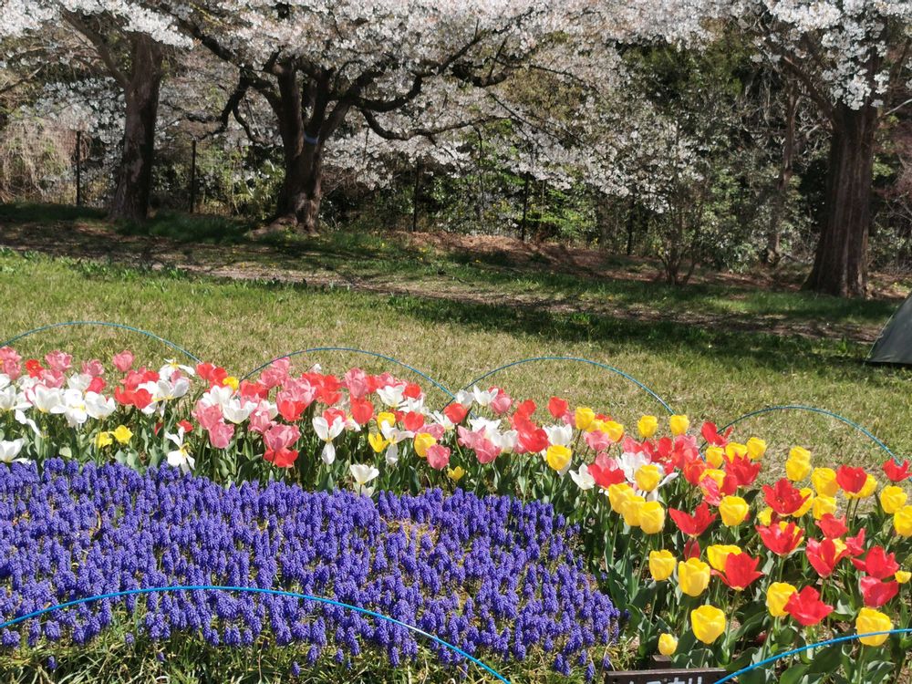 カラフルなチューリップや桜が綺麗でした。