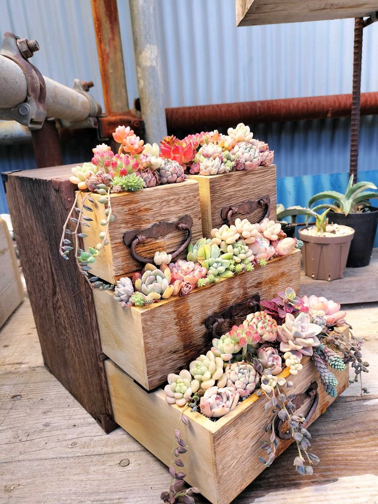 フリーマーケットで見つけた小引き出しに可愛い多肉を植えたくて