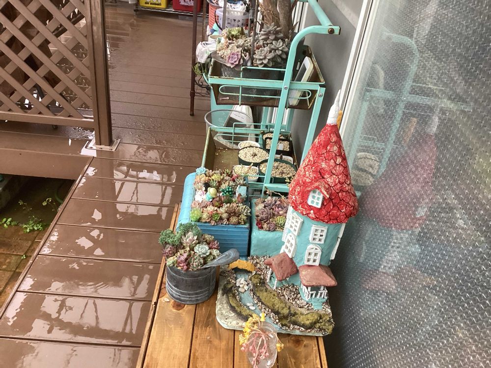 ウッドデッキもベチャベチャ今日は多肉ごとできませぇ〜ん(^ω^)
