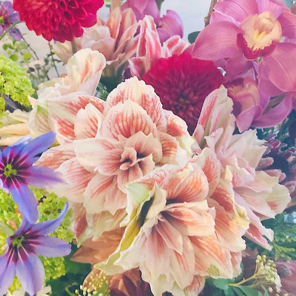娘が頂いた、お祝いのブーケの中にある「マジックアマリリス」で、おはようございます💐🎩✨