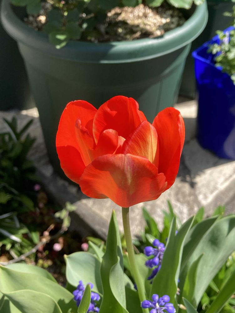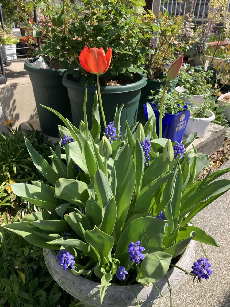ダメ元でムスカリとギュウギュウに植えたものが何ともいい感じに❤️