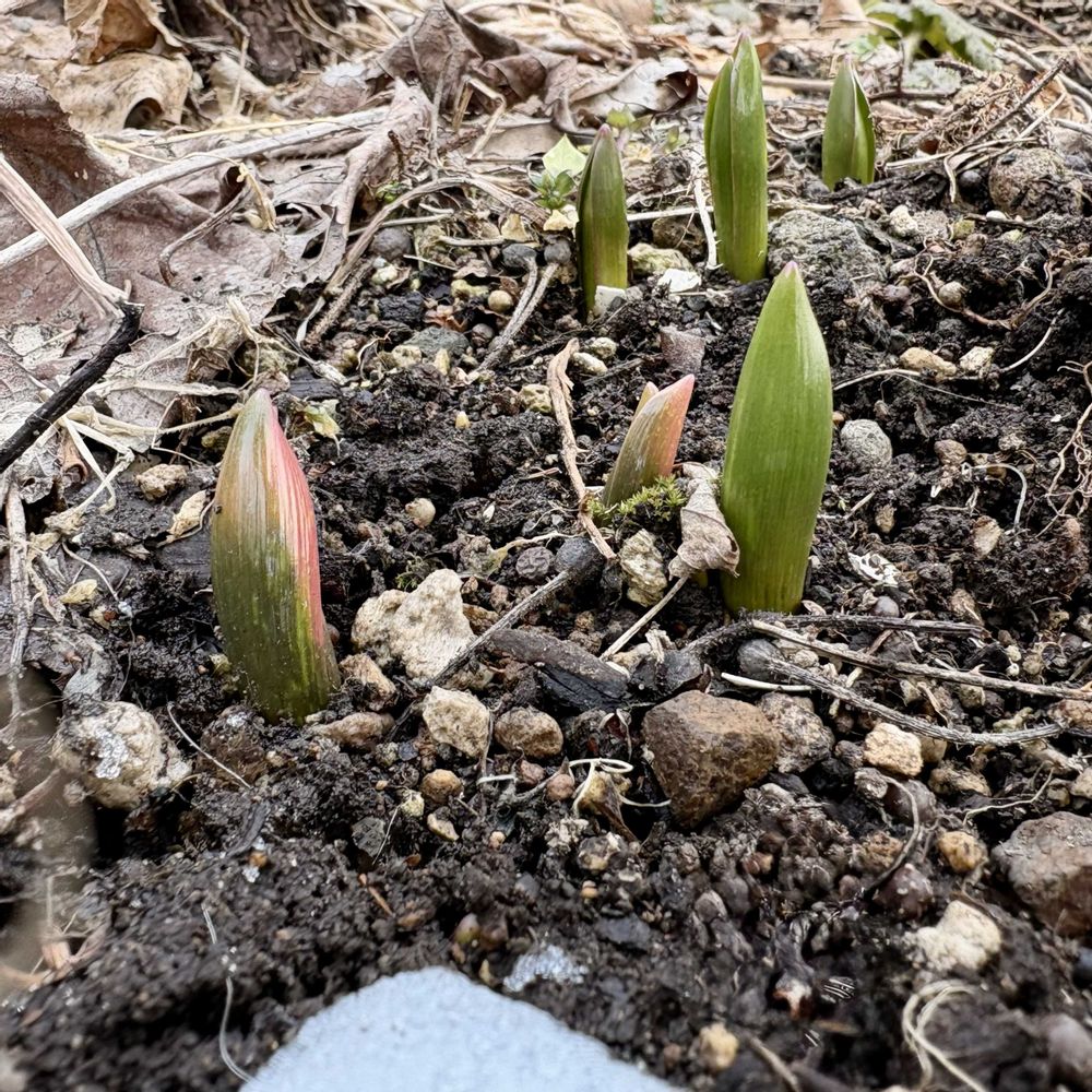 雪の下から新しい芽を見ると嬉しくなりますね🌱どんな花が咲くのか楽しみ♪