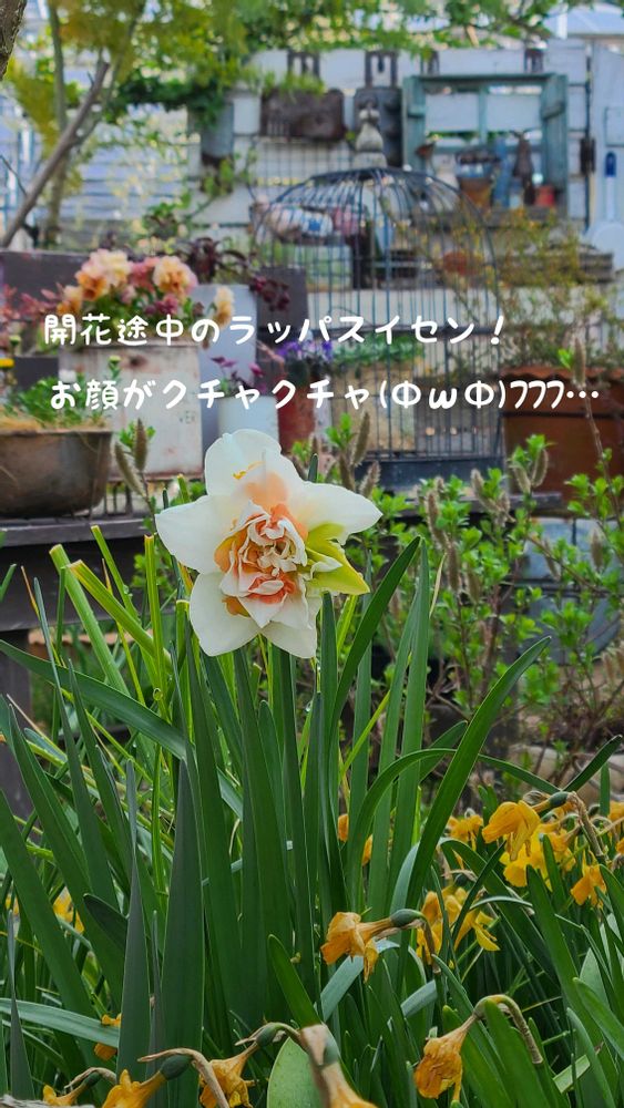 ラッパスイセンは開花が始まったところなのでお顔がクチャクチャです❣