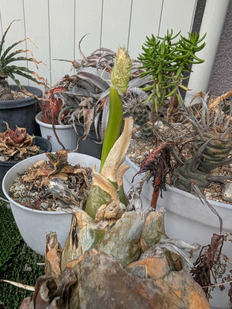 ⚫サボテン、アロエ、塊根など。 ⚫たまに「いいね」押してます。 --------------------------------------------------------- 【19.08】19年8月頃から徐々に多肉植物・サボテンの魅力に取り憑かれてしまいました。 【19.10.22】グリーンスナップを始めました。 【21年~22年】冬越しをほぼ室内避難しないチャレンジ。 【我が家の多肉植物・サボテン・観葉植物】220506時点 662/878 【セダム】3/6 ×春萌(19/11/3) ×プロリフェラ(20/2/1) ×薄化粧(20/2/5) ・※虹の玉(20/2/6) ・※虹の玉?乙女心?(20/2/6) 6・※黄麗(月の王子)(20/3/5) 【チレコドン】2/5 ×ブッコルジアヌス(19/11/3) ×スカエフェリアヌス 群卵(20/3/4) ×万物想(レティキュラーツス)(20/9/4) ・万物想(レティキュラーツス)②(20/10/2) 5・ワリチー(20/10/8) 【クラッスラ】10/17 ・天狗の舞(19/11/3) ・紅稚児(19/11/3) ×姫花月(19/11/3) ・テトラゴナ(19/11/12) ・火祭り光(19/12/4) ×花月錦白斑(19/12/4) ×※花月(金のなる木)(19/12/12) ・神刀錦(20/1/8) ×キムナッキー(20/1/10) ×10・※メセンブリアンセモイデス(ラージフォーム)(20/1/23) ×※花月?黄金花月?⇒火祭り錦?(20/1/23) ・巴(20/2/27) ・※火祭り(20/3/5) ・ゴーラム(20/12/16) ・神刀(20/12/24) ×アイボリーパゴタ(20/12/24) 17・spトランスバール ドラケンスバーグ(20/12/24) 【カランコエ】1/19 ・錦蝶(19/10/19) ×不死鳥錦(19/10/24) ×カーニバル(19/12/4) ×※月兎耳?(19/12/26) ×唐印(19/12/28) ×テディベア(20/1/10) ×ファング(20/1/11) ×ミロッティー(20/1/23) ×※黒兎耳?月兎耳?(20/2/6) ×10・※胡蝶の舞(20/2/6) ×星兎耳(20/2/12) ×ゴールデンバニー(20/2/12) ×福兎耳(20/2/12) ×姫黒兎耳(20/2/19) ×※シナモン?孫悟空?(20/2/19) ×キューエンス(20/2/19) ×※月兎耳(20/2/20) ×黒兎(20/2/20) 19×シナモン(20/2/21) 【センペルビウム】13/17 ×巻絹(19/9/6) ・パシフィックナイト(19/9/14) ・※百恵(19/12/12) ×※高嶺の華(19/12/12) ・※綾桜(19/12/12) ・※ファイヤーバード?パルグラム?(19/12/12) ・※レッドチーフ?ウラヌス?(19/12/12) ・※シャンハイローズ?(20/2/4) ・※神風?(20/2/4) ×10・※綾桜?(20/2/4) ・※麗人盃?(20/2/4) ・※雪牡丹?(20/2/4) ×※紅牡丹?(20/2/4) ・※ラウンドシーン?(20/2/4) ・※巻絹?(20/2/6) ・レッドベル(20/2/19) 17・※ご近所さん(20/5/17) 【ガステリア】39/43 ・春鶯囀バテシアーナ(19/11/20) ・グロメラータ(19/11/20) ・臥牛(19/11/20) ・リリプターナ(子亀姫)(19/11/20) ・白星竜(ベルコサ)(19/11/20) ・錦沙戸宝(19/11/20) ・ニティダ(19/11/22) ・フロッキー(19/11/22) ・姫子宝錦(19/11/24) 10・虎鉾(19/11/24) ・富士子宝錦(19/11/26) ・照姫(19/11/27) ・恐竜×大桑臥牛(19/11/29) ・颯々の松(19/11/29) ・ドラゴンスキン(19/12/2) ・名前不明⇒グリーンワイパー(19/12/4) ・黒鶯囀(19/12/4) ×臥牛錦 糊斑(19/12/4) ・白臥峰ダルマタイプ(19/12/4) 20・バイリシアナ×グロメラータ(19/12/10) ・ピランシー錦※斑多め(19/12/24) ・ピランシー錦※斑少なめ(19/12/24) ・臥牛竜(19/12/24) ・グラキリス(虎の巻)(19/12/25) ・ホワイトパール(20/1/7) ・白銀水牛(20/1/7) ・エクセルサ(20/1/8) ・ダルメシアン(20/1/10) ・タワー(20/1/23) 30・クロチェリー(20/1/23) ×ニグリカンス f.dark monstrosa(20/2/27) ・金剛殿(20/2/27) ×ラウリンソニー(20/3/13) ・幅広ピランシー(20/4/7) ・恐竜×白点臥牛(20/4/7) ・恐竜(20/11/9) ・ラウリンソニー②(20/11/19) ・恐竜②(21/1/12) ・恐竜×春鶯轉(21/1/13) 40・ホワイトパール②(21/1/13) ×ラウリンソニー③(21/2/10) ・エレフィアエ(21/4/13) 43・臥牛②(21/6/14) 【ディッキア】49/52 ・ハイブリッド(19/11/6) ・(アリソナ×マルニエルラポストレイ)×ボーン(20/2/21) ・アリゾナ(20/3/13) ・ニッケルシルバー(20/3/13) ・縞剣山錦(20/3/18) ・(ケリー×マセドイ)×ヘブディング ビッグブルーF1(20/3/24) ・ターザン(20/7/15) ・ゴエリンギー(20/7/15) ・エステベシー(20/7/16) ・グランマルニエル スノウ(20/8/21) ・ダウソニー(20/9/9) ・コリスタミネア パープルフォーム(20/9/16) ・マイケルアンドレス(ブリットルスターF3)(20/9/16) ・ゴエリンギー レッドクローン×ターザン(20/9/18) ・ターザナ(20/9/18) ・レッドボーン×スカイウォーカー(20/10/27) ・グランマルニエル(20/11/4) ・トゥーシ―F2(シルバークローン)(20/11/4) ・グレイオプス(20/11/5) 20・タイニーレッド×ヘブンアンドヘル(20/11/5) ・マルニエルラポストレイ エステベシー シーディング ブラジル(20/11/5) ・(レッドシャーク×ディストーション)×ジョーズ(20/11/5) ・ブラックアイス(20/11/6) ×ダウソニー×ガーネットクロウ(20/11/12) ・デリカータ(20/11/18) ・エステベシー×ゴエリンギ―(20/11/30) ・ゴエリンギーOPS セレクト ホワイト(20/11/30) ・(ソウフィッシュ×7a)×ターザン(20/11/30) ・ベアテアエ レッドクローン(20/12/07) 30・アリゾナ×HU-5(20/12/08) ・エステベシー②(20/12/08) ・ダコタ(20/12/09) ・マルニエルラポストレイ(20/12/10) ・エステベシー×ブリットルスターF2(21/1/8) ・マウンテンオブニードルズ(21/1/14) ・エステベシー③(21/1/27) ・パラファット(21/2/10) ・ジョーズ×ドナマリエ(21/3/15) ×フォステリア×エステベシー(21/3/15) ×40・フォステリア×エステベシー②(21/3/15) ・カタナ(21/3/24) ・スノーストーム×ブライヤーパッチ(21/3/24) ・ワサビ(21/4/7) ・ブラックアイス②(21/4/12) ・ブラ