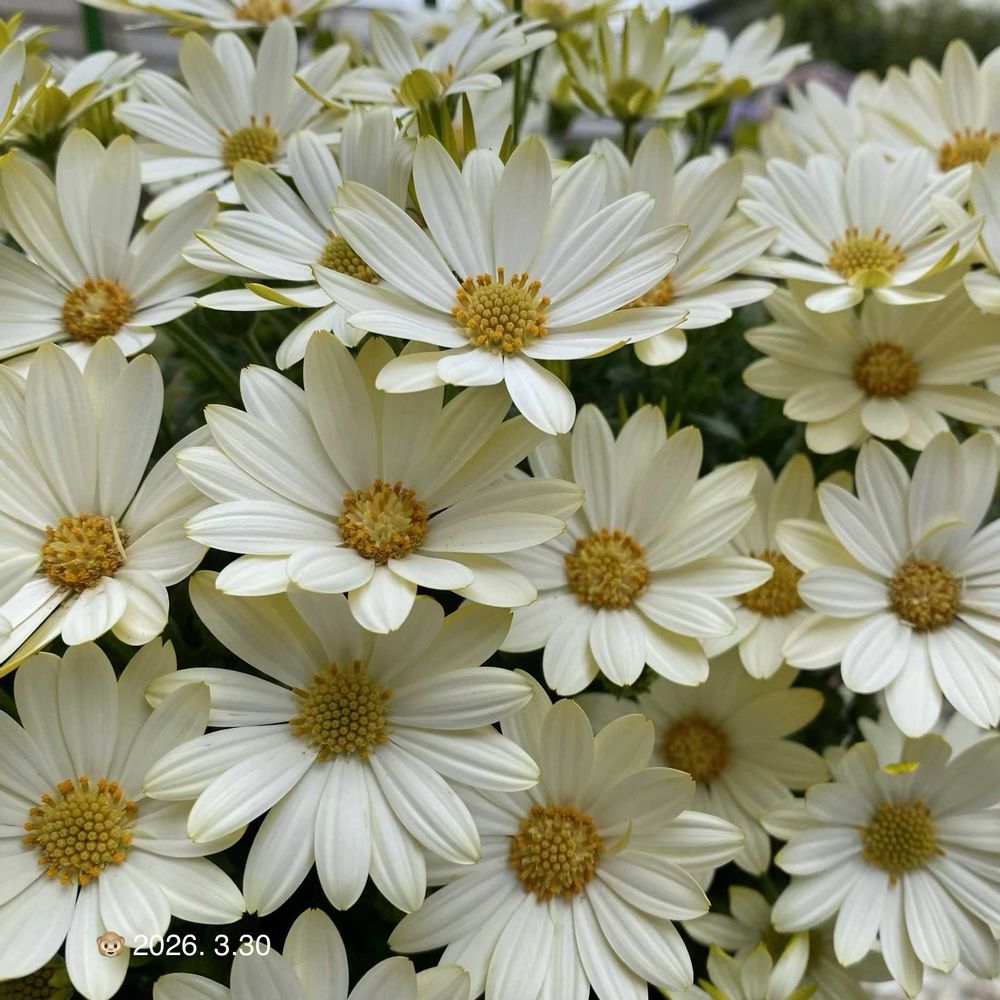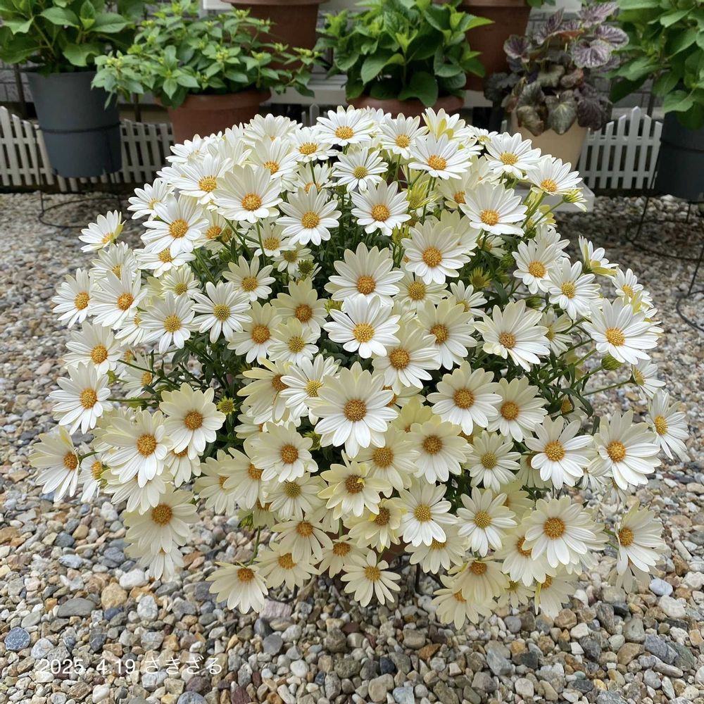 軒下管理で冬を乗り越えてくれたキラホワchan📌④12/12の頃は「おっ順調」と思っていたけれど一度切り戻さな✂️いかんかったかな🤔株幅80cmめっちゃふんわりに咲いてくれたよ🐵