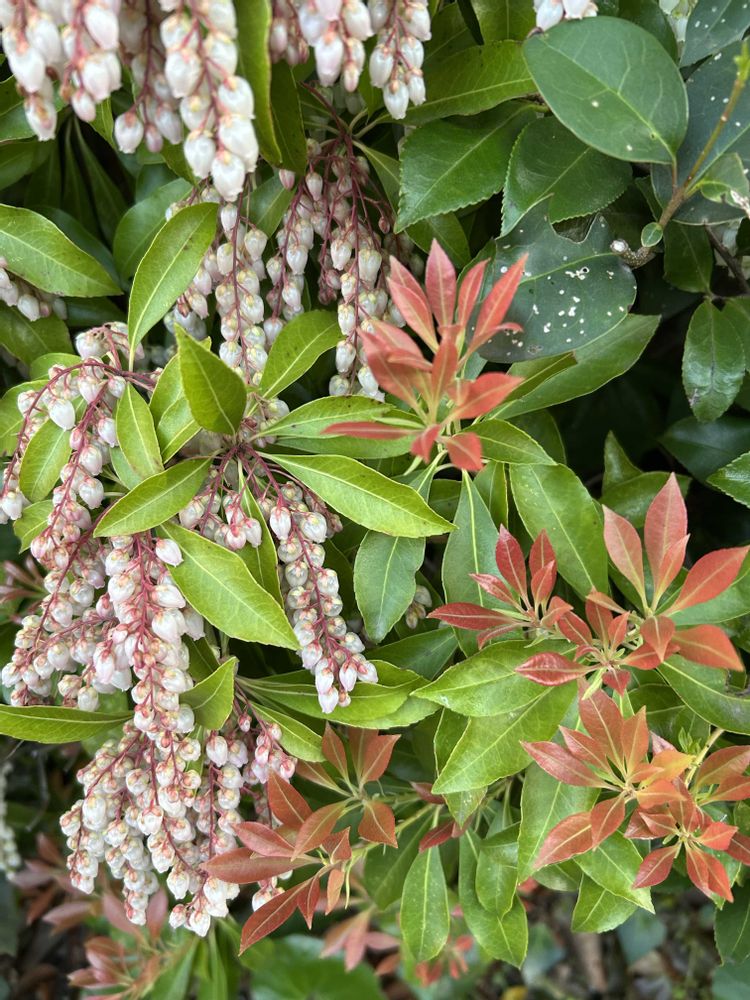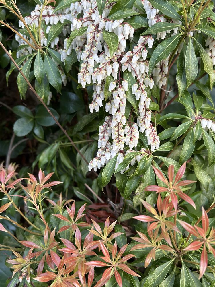 白いお花の咲く『アセビ』は、純正種で毒性があり、昔から[動物避け]として植えていたみたいですネー😳😳
