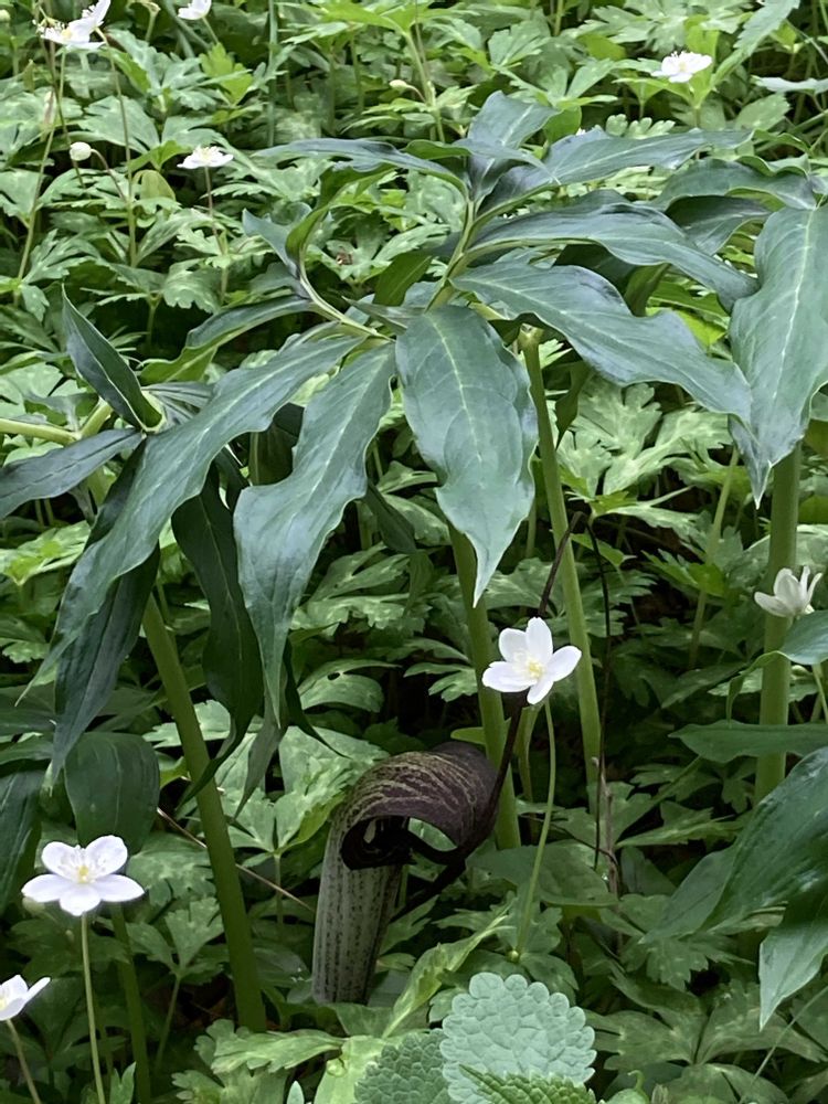 別々に咲いていますが、同じエリア内で二輪草、浦島草、薮人参が近い場所です♪♪