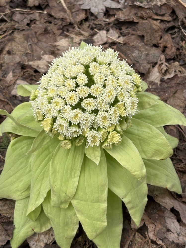 野生の花はまだアキタブキのフキノトウだけです。ついに私の拳より大きな個体を発見しました。ほんとデカイ‼️⑤