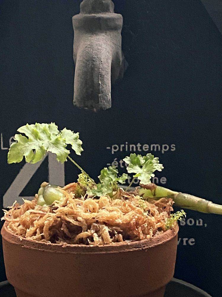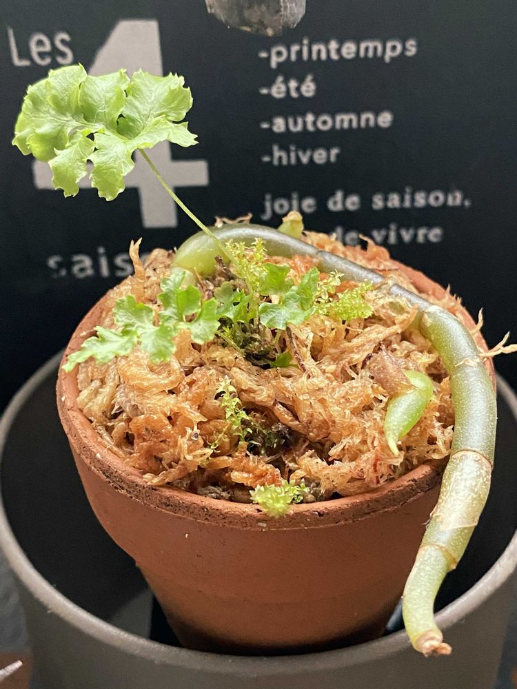 ①②ジュエルオーキッドの葉が枯れてしまい、そのままだった鉢に何時しかシダが🌱を出した