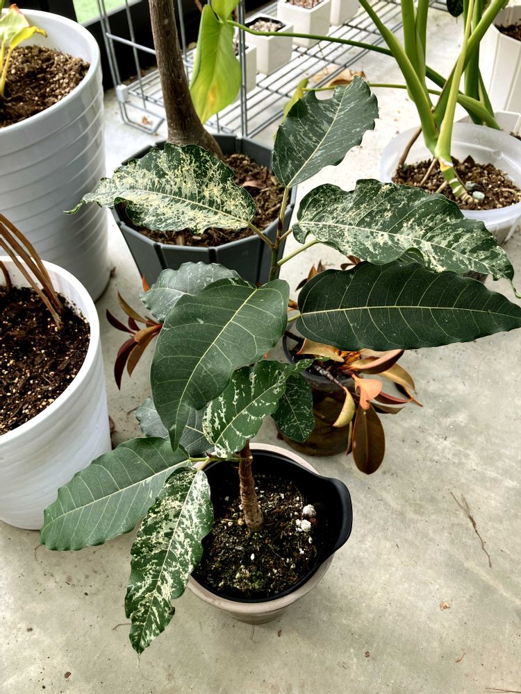 フィカスとしか書かれていなかったのでどっちかわかりませんが、きれいな斑入りにひかれて買っちゃいました