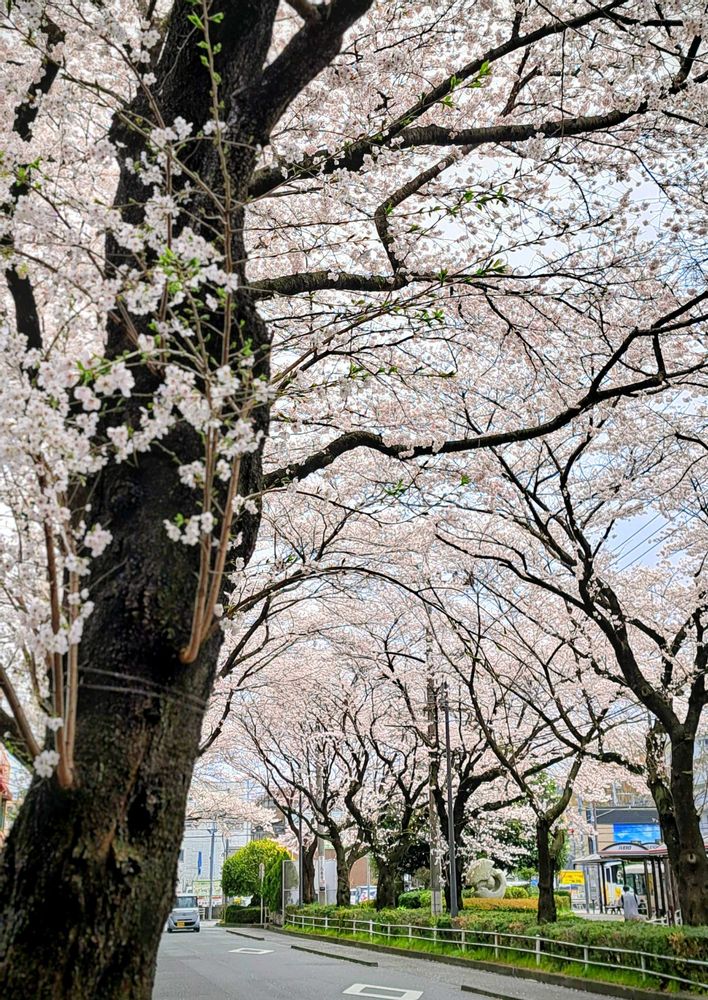 駅前広場の並木の桜