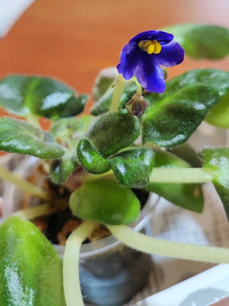 セントポーリアがまた咲いてました。葉挿しポット上げしたミニカップで…あなた誰かな。