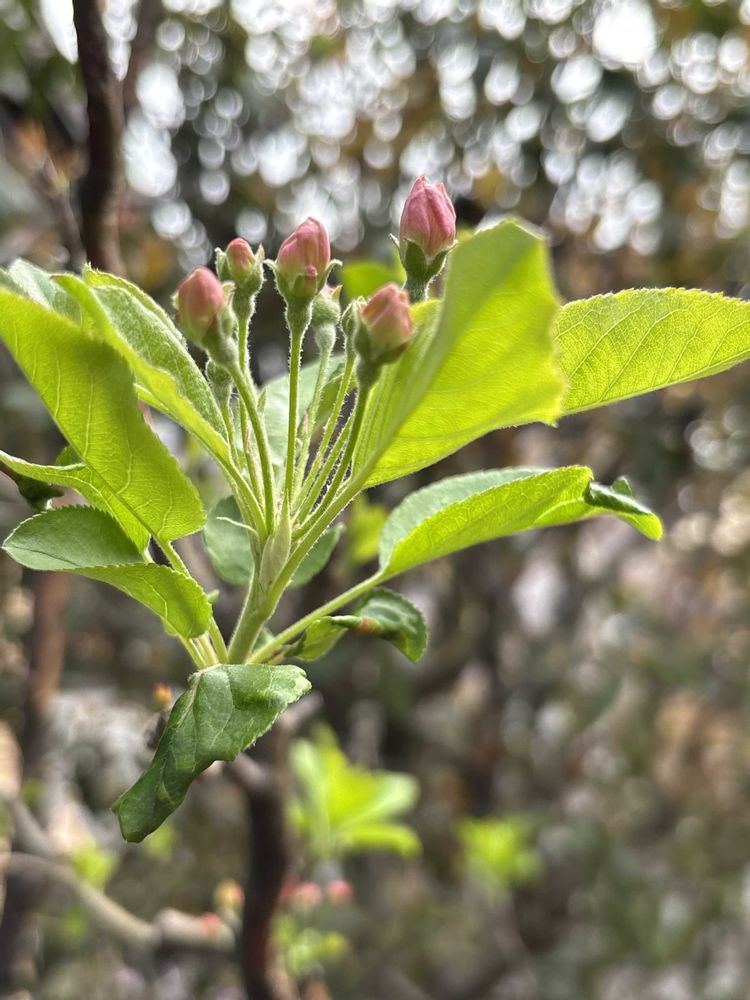 姫りんご🍎の花芽、ひさびさにたくさんの枝に花芽をつけました😄