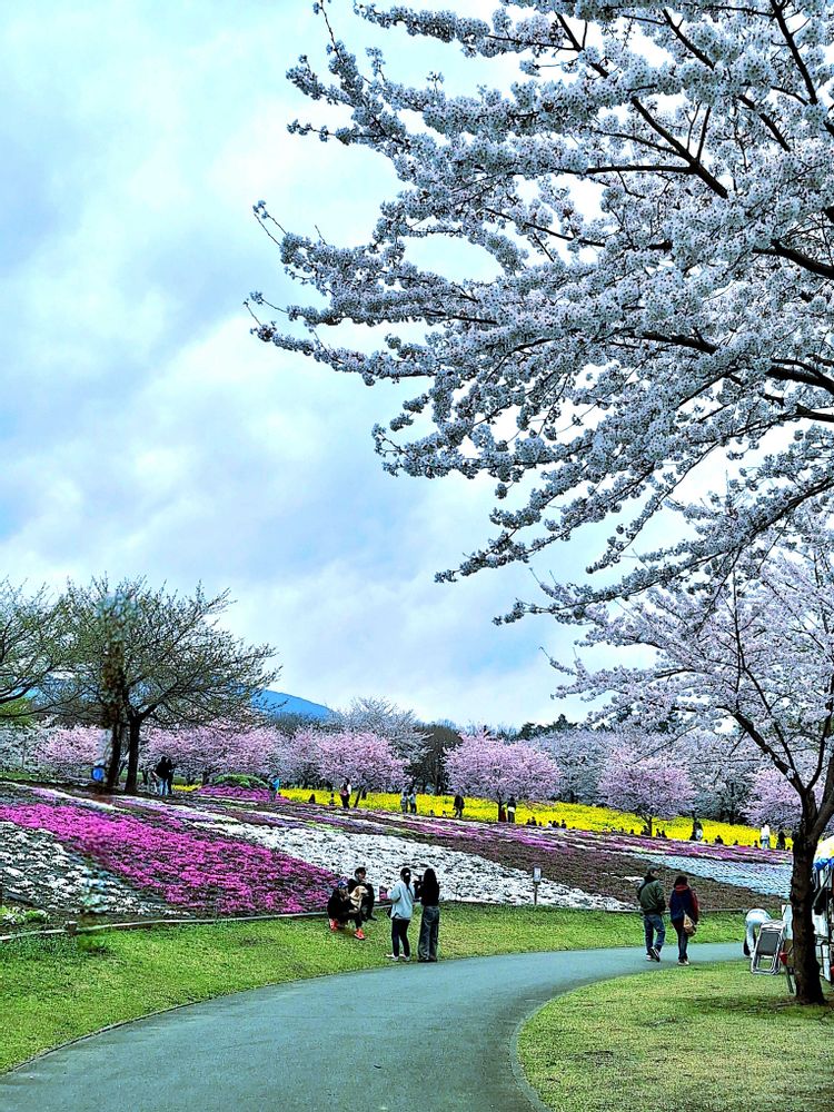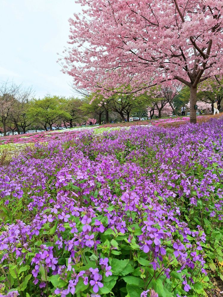 桜の木が年々大きくなってきていますし、菜の花の他に芝桜やムラサキハナナ等も充実してきて見ごたえがありました❗😄✨