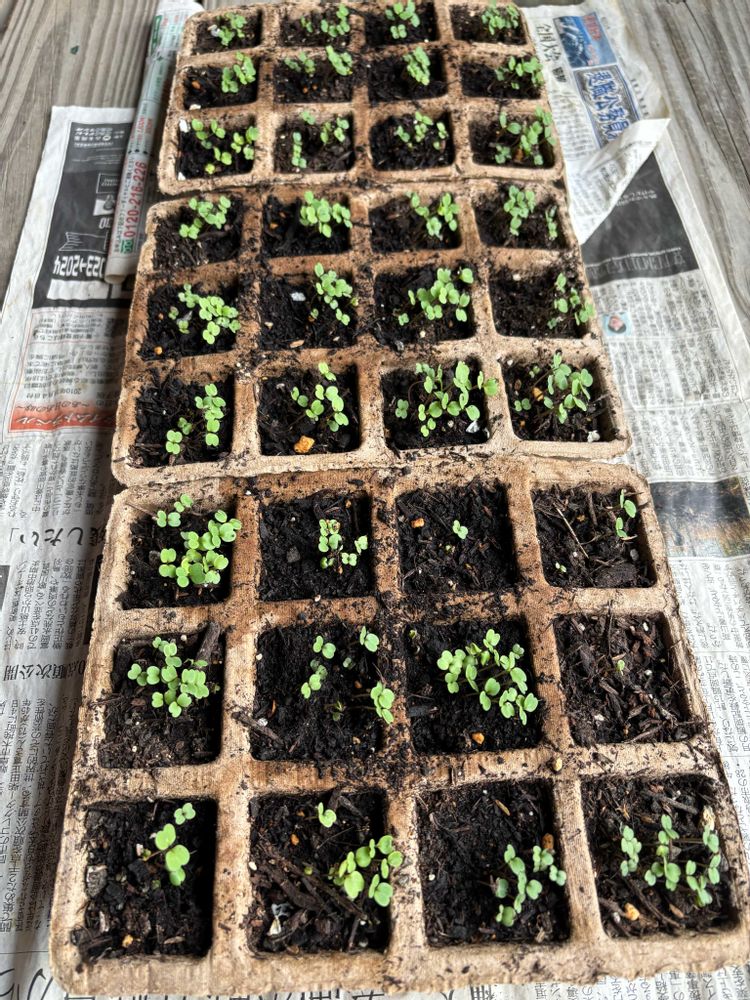 ルッコラというハーブの種です。葉っぱが大きくなったら、サラダで食べるとめちゃ美味しいんです😋