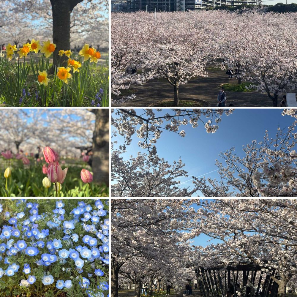 チューリップやネモフィラも桜の足元に植えてあったり、高台から見下せる一面の桜が満開で綺麗でした😄