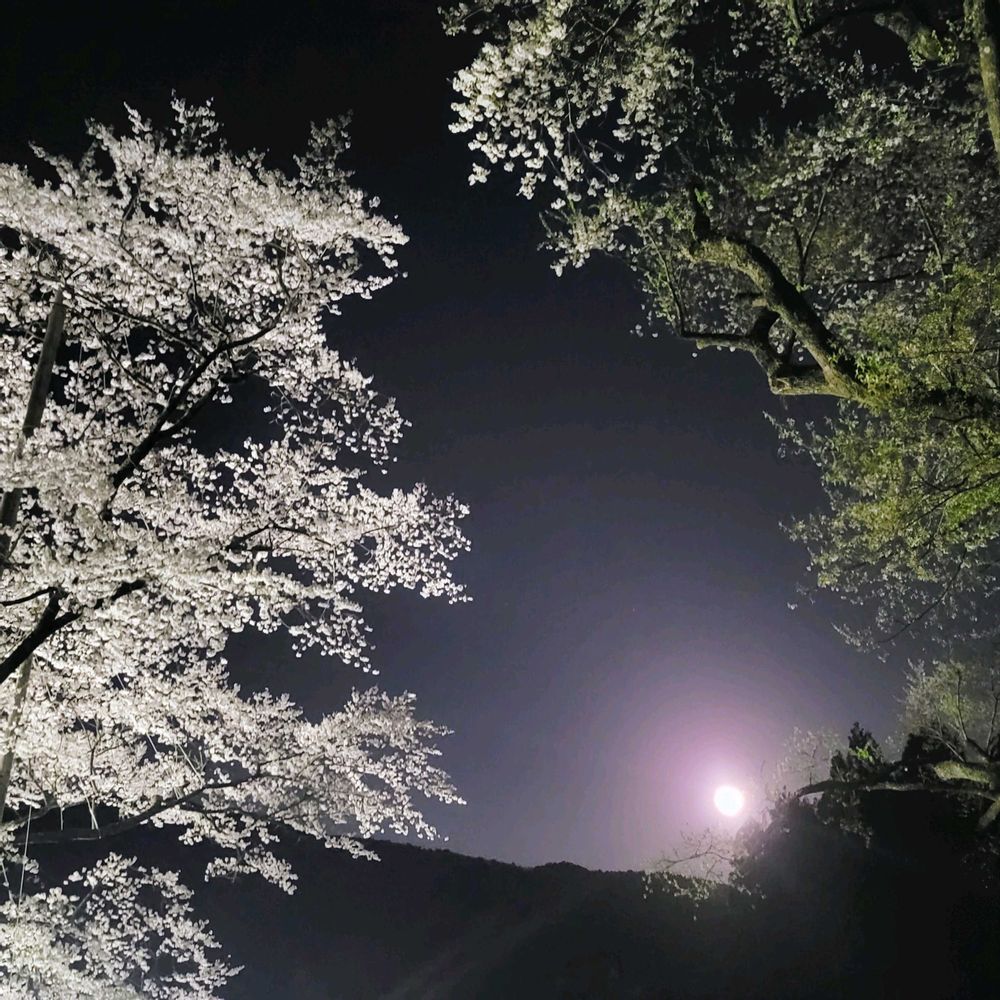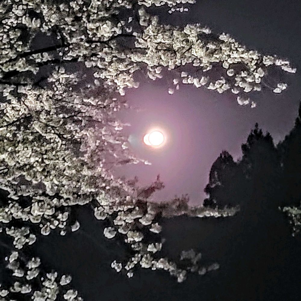 その後の☔もあり、もう、散っているかと思いましたが今夜しか月🌔と🌸の競演は見られそうもないと🚙を走らせました。