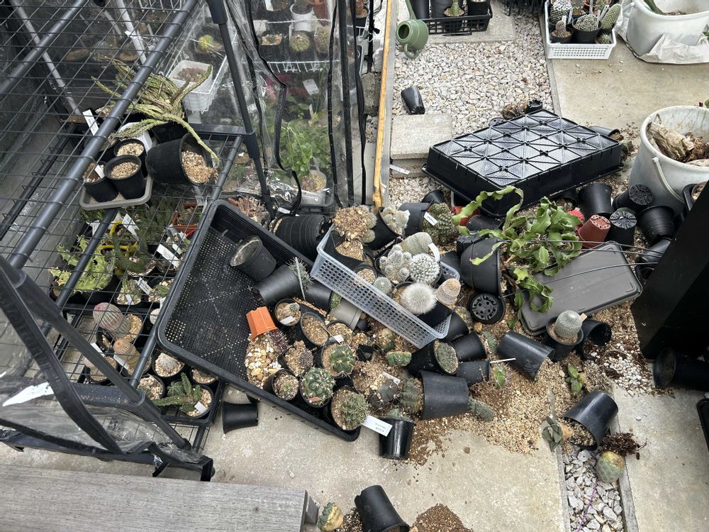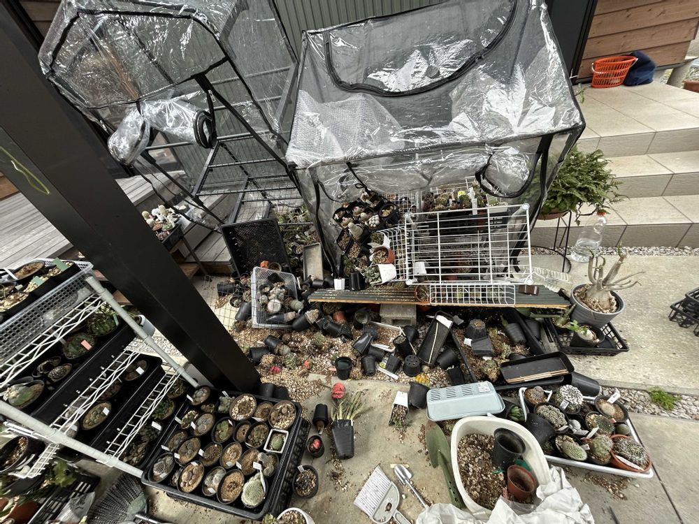 春だから、朝から、ほぼ外に植物移動させ、それから植替えと胴切りで、よーし本日、これで終了!