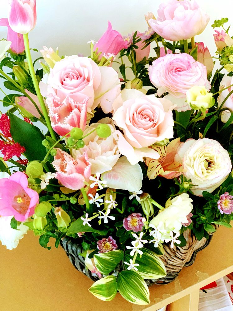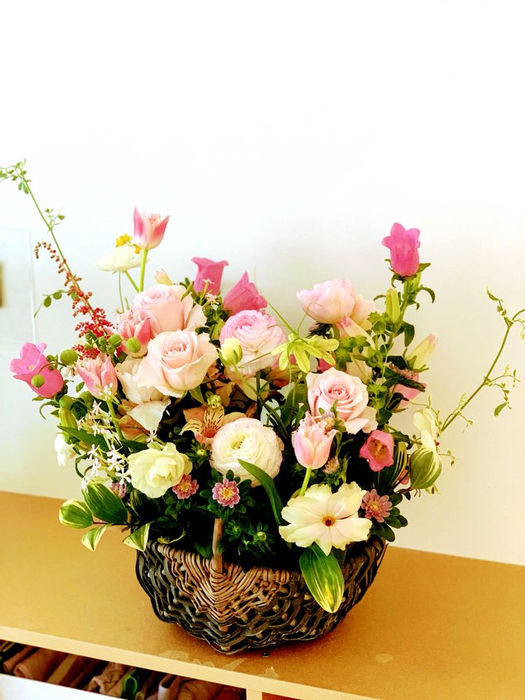 ロジフラワーさんは、お人柄が良い方で、相手を想像しながら花籠を作ってくださいます。