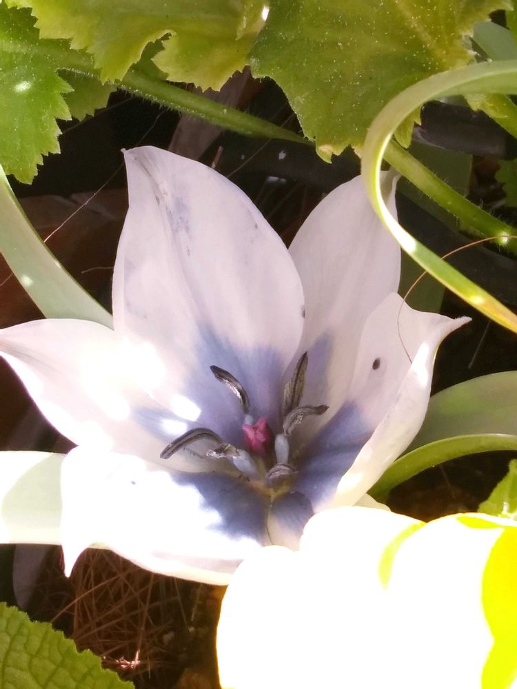 マラコイデスとジュリアンのプチ寄せ植えに仕込んでおいた小さな原種チューリップ🌷とムスカリが咲きました✨