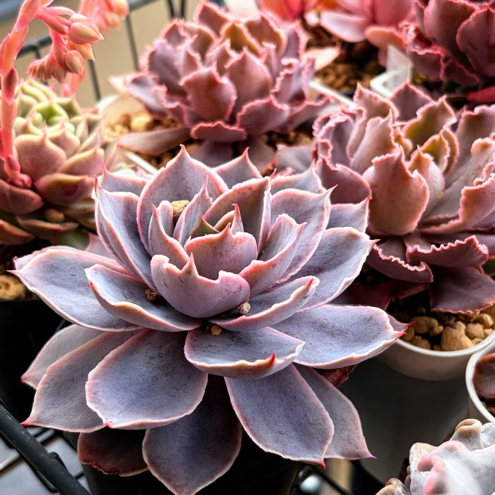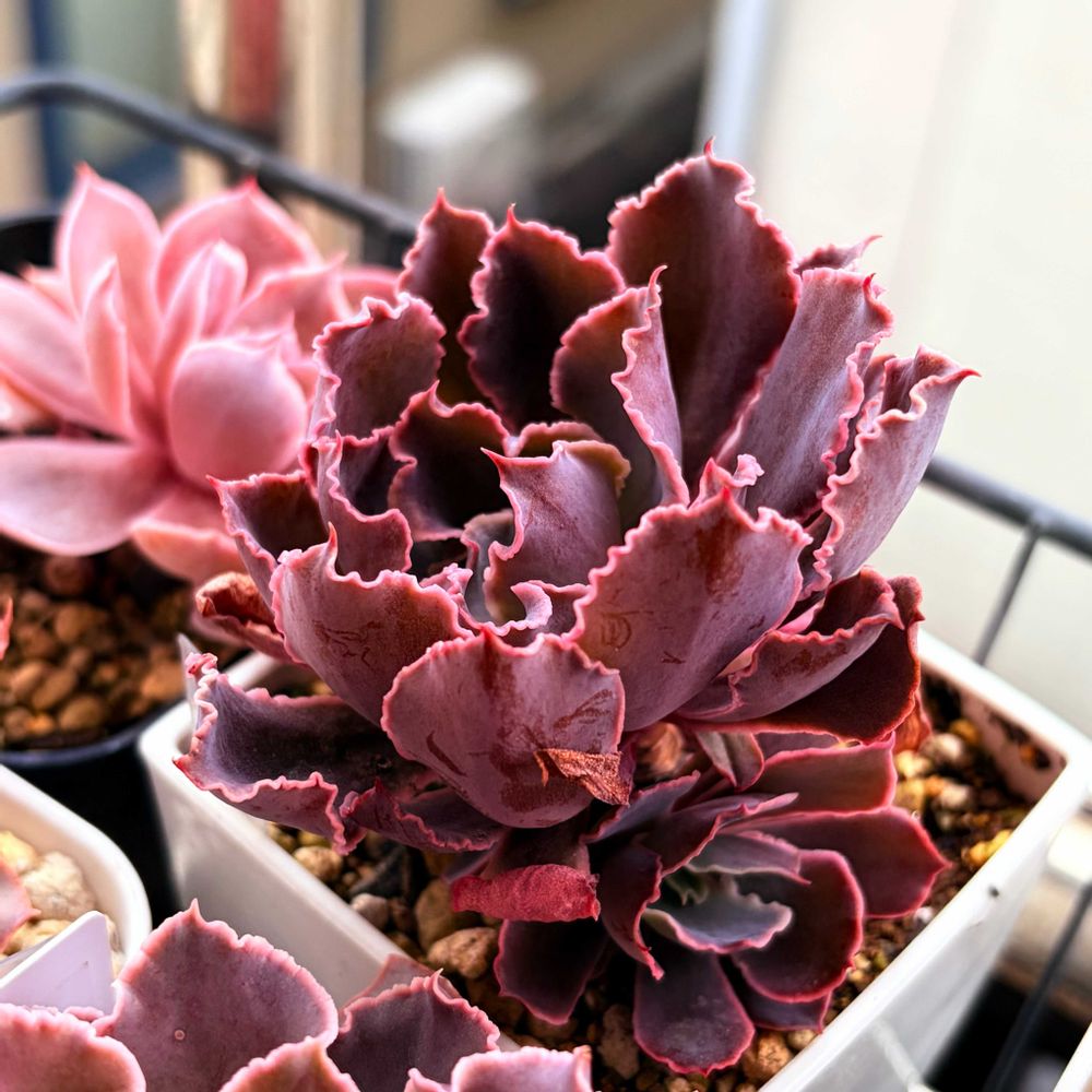 2025年4月にネットでたにたのさんの苗を購入した時におまけでついてきた名無しのエケベリアが面白く育っているので、成長記録を作りました。 この子の名前ご存知でしたら、ぜひ教えてください🙏