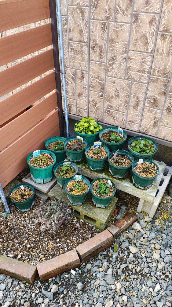 玄関に作った仕切りの日陰側が住処になった大文字草達いくつかショボいのは処分するか悩み中