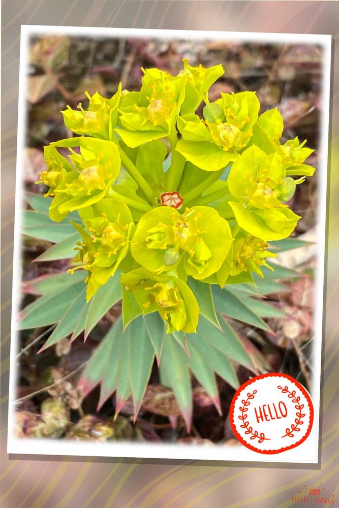 2枚目 ユーフォルビア・リキダ トウダイグサ科 神代植物公園の枯れ草の中から咲いていました❣️