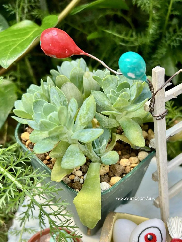 2025年4月にネットでたにたのさんの苗を購入した時におまけでついてきた名無しのエケベリアが面白く育っているので、成長記録を作りました。 この子の名前ご存知でしたら、ぜひ教えてください🙏