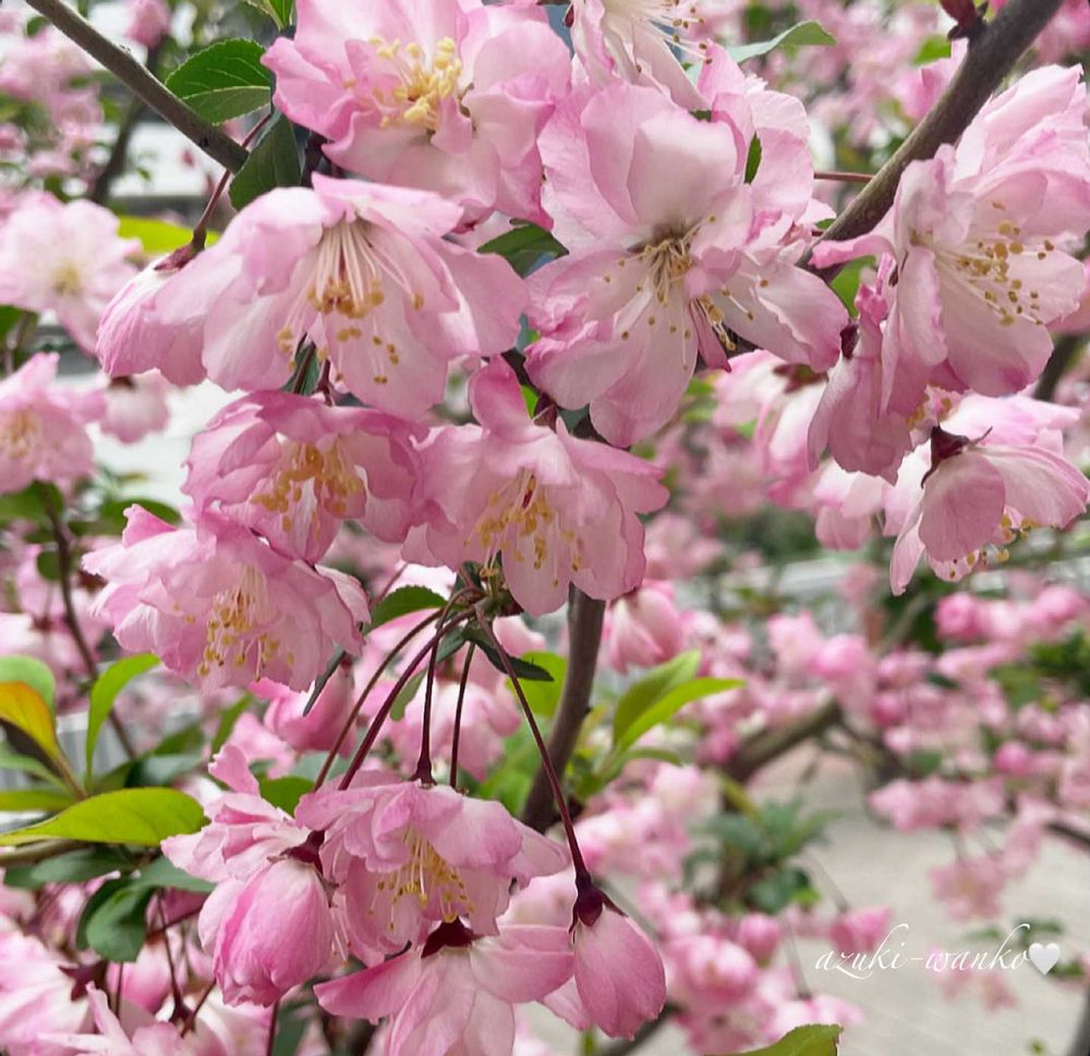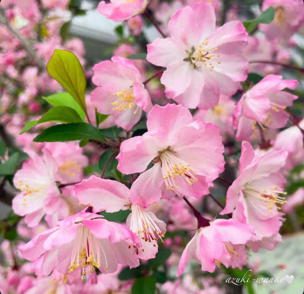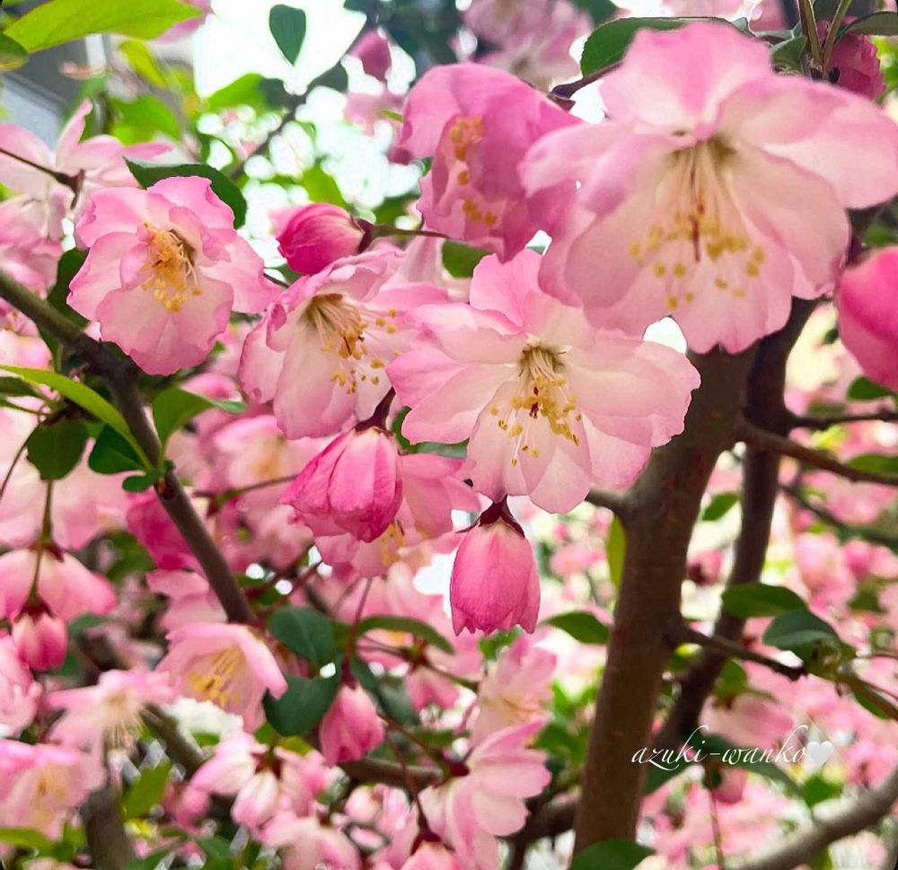 ハナカイドウ(学名: Malus halliana 英名: Flowering crabapple、Hall’s crabapple 和名:花海棠)の花🌺🌿🌸