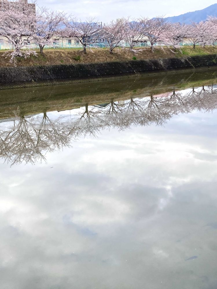 ⑤最後に家の近所の川沿いの桜🌸 水面に写って綺麗だったので📸