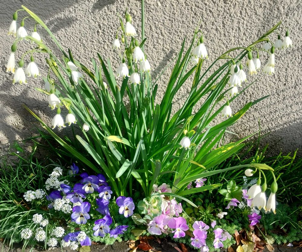 玄関門柱足元のスズランスイセンが花盛りです♪