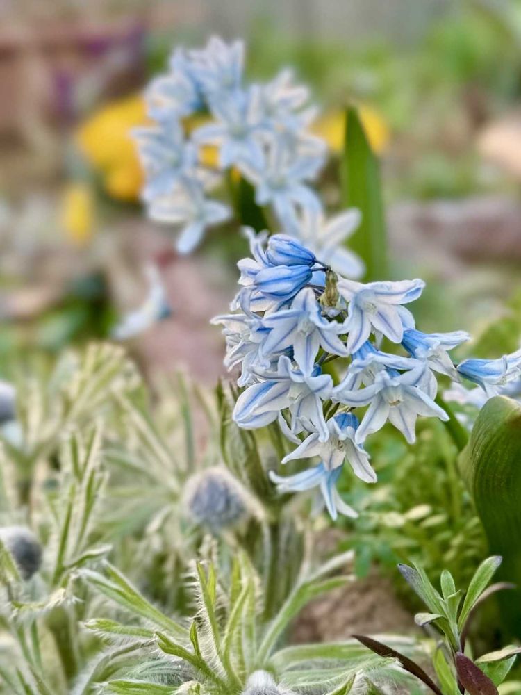 まだ葉っぱ🌿だけのネモフィラのなかにプスキニアのブルーが輝いて見えました♡