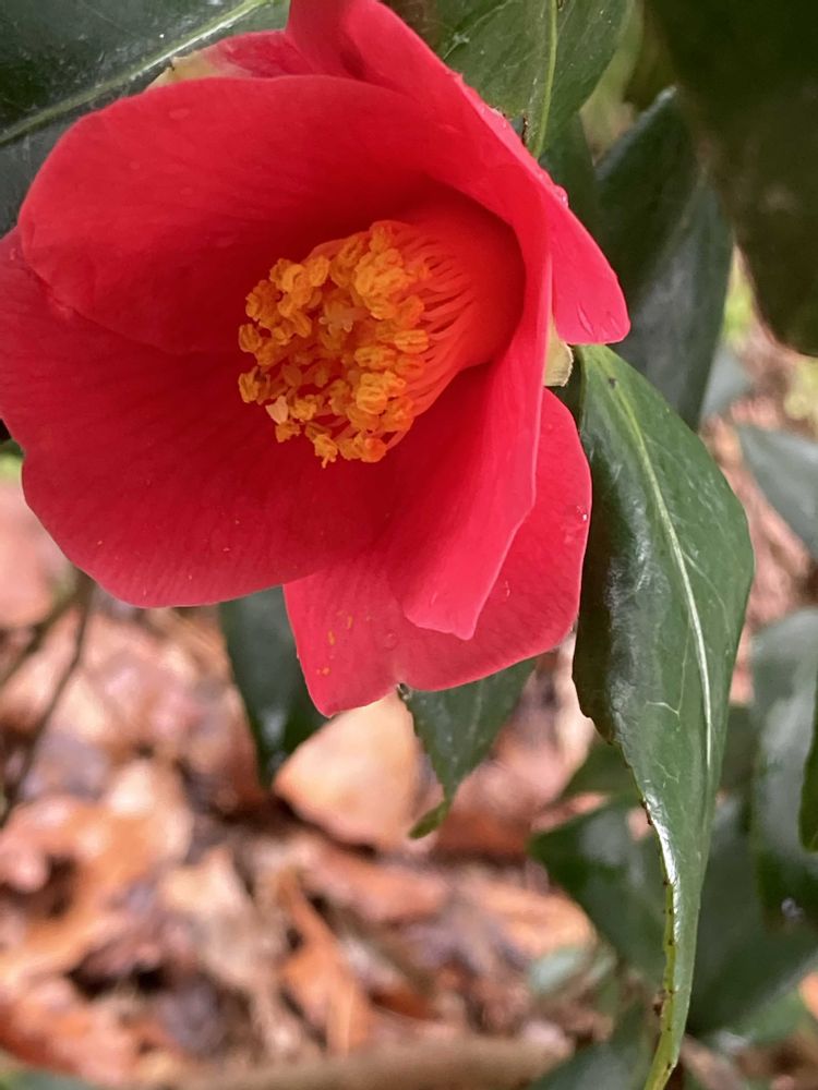 先週出かけた大崎雪割草の里で出会った真っ赤な椿❤️