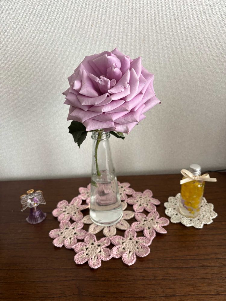 桜の季節なので昨年だったか編んだレース編みの花瓶敷きとコラボしました🌸🌹