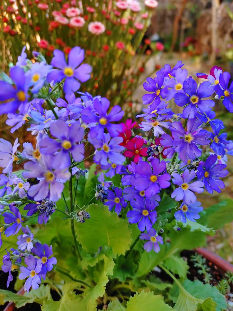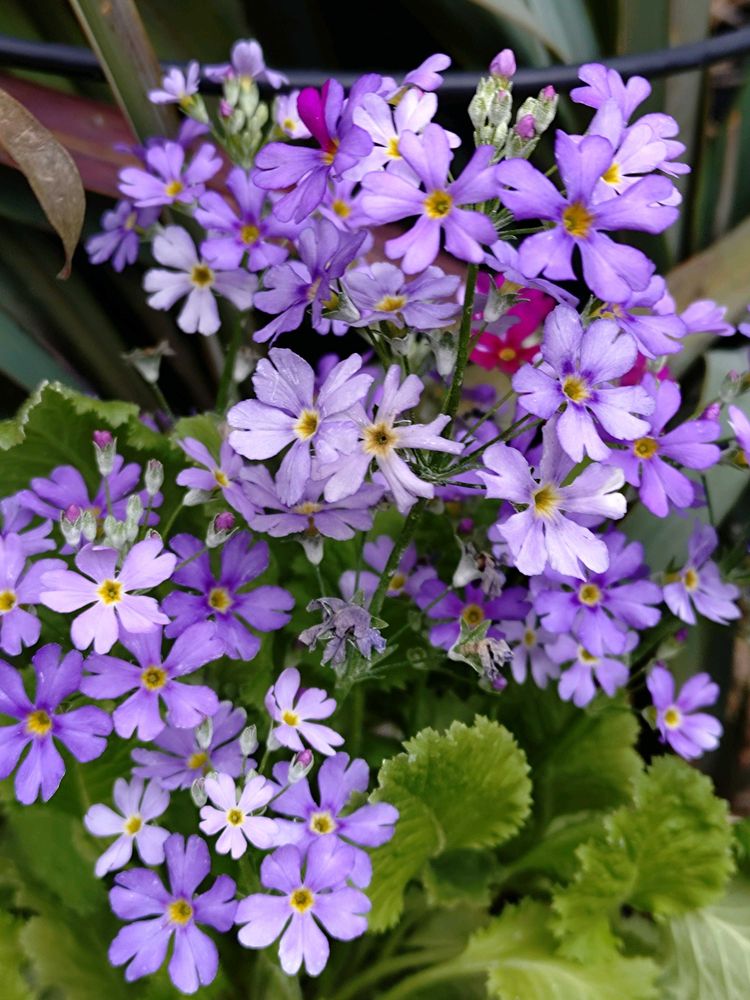 爽やかな青色の(ブルー淡紫色)花を沢山咲かせるプリムラマラコイデス