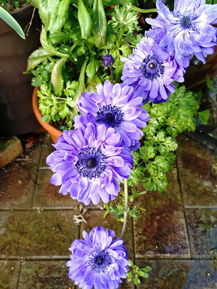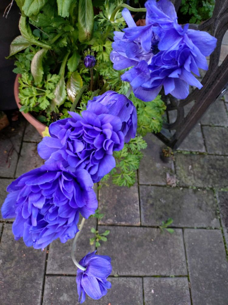 アネモネ〜スゴい花盛りでそして花が大き過ぎるからちょっと順番に倒れてます〜🤣💜💙💜💙💜