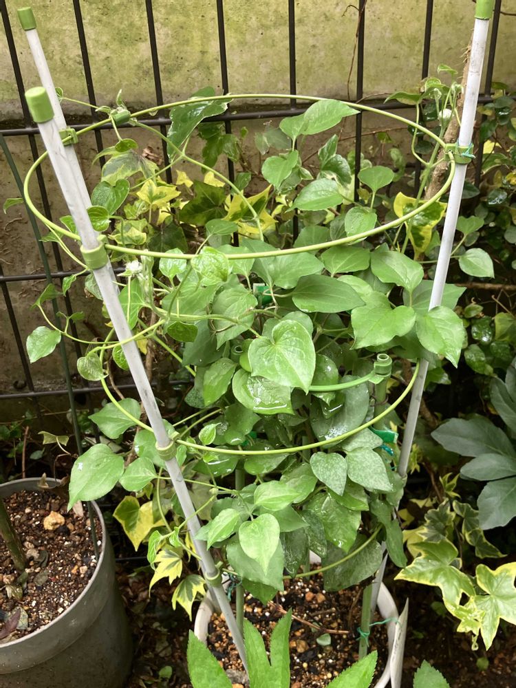 ヒスイカズラを育ててみたくなり、購入する前に先ずはネットで育て方を検索しました。 検索した結果、沖縄などの温かい地方での地植えや、植物園の開花の投稿は沢山有りましたが、鉢植えでの詳しい育て方は余り投稿されていませんでした😅 育てる事が出来るか分かりませんが、これもチャレンジと思い、取り敢えずメルカリで購入して見ました。 お迎えしたのは2025年6月の初めです。 植替えに適した時期にしました。 調べた結果、気難しいと出てたので、最初から少し大きめな子をお迎えしました。