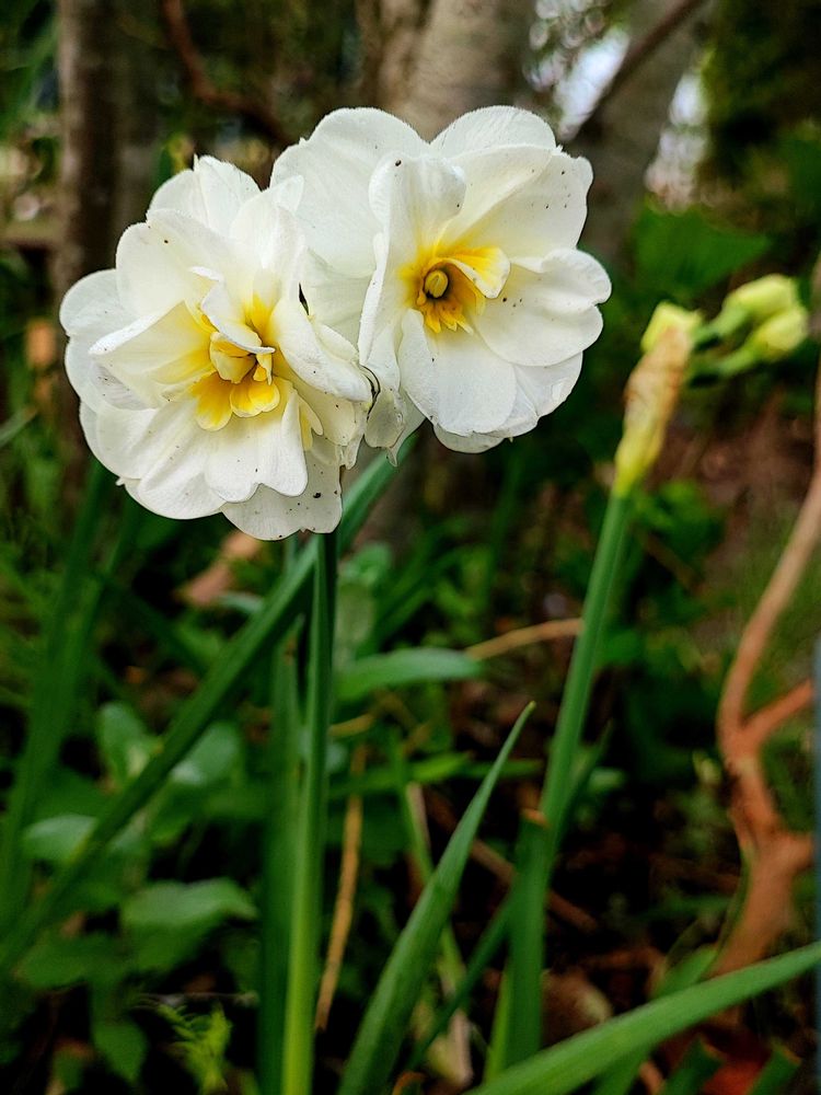 庭ではまた新しい水仙が開花してました。チャフルネスかなー。ちょっと前に咲いていたサーウィンストンチャーチルともしかしたら一緒かもしれません。まぁ可愛いのでなんでもいいですわ。ミツカドネギも花がちょっと増えました。