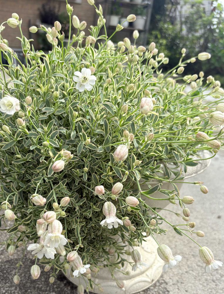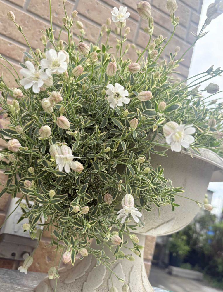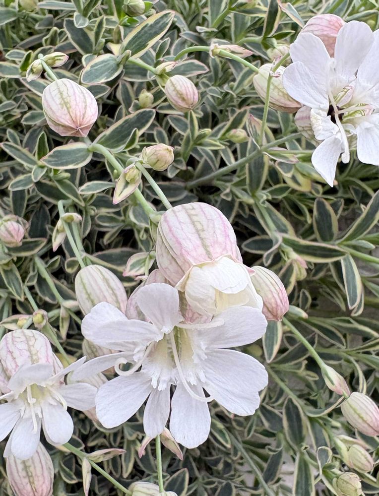 3️⃣4️⃣5️⃣冬越ししたシレネ ユニフローラが咲き出してこの白と緑🤍💚と薄いピンクの蕾そして斑入り葉🌿の世界観がまたいい〜💞✨