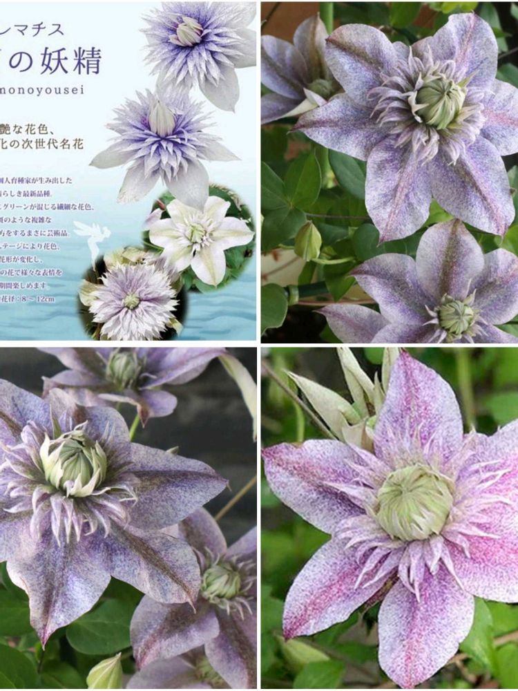 多分2年生苗、新しくお迎えしました。2023年の新品種なんですね。白万重が立ち枯れして、新たに芽を出してきたのが多分ベティコーニングなので、早咲き品種が藤煤竹だけだなあ、と思い、フロリダ系で探していました。蕾が沢山ついています。2枚目の写真はネットからお借りしました。散り斑が沢山はいり、色幅がある花みたいですね。