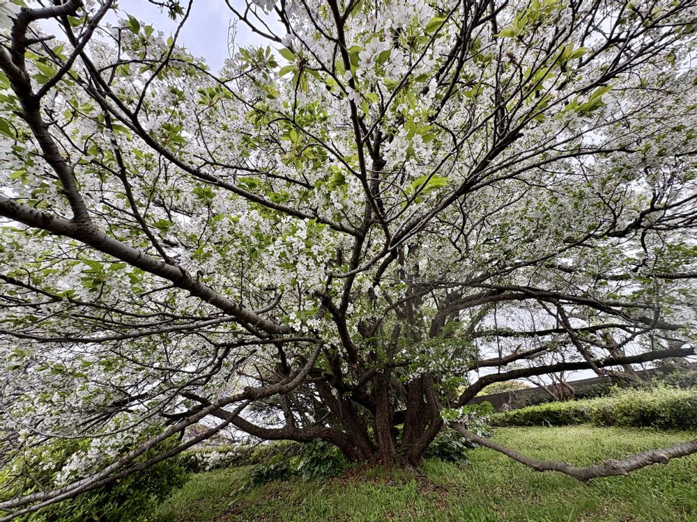 規制線ロープ外までググっと伸びる枝に、リスペクトこめてそっとハイタッチ🤚
