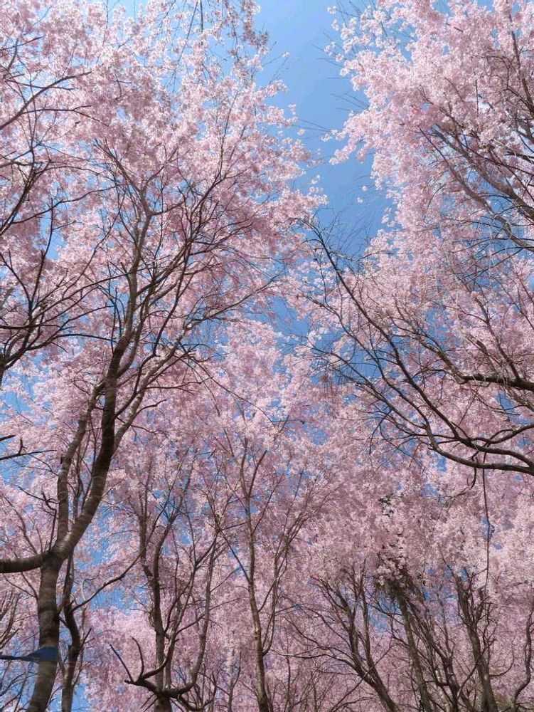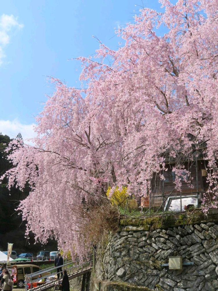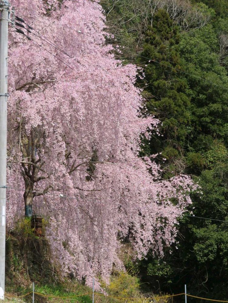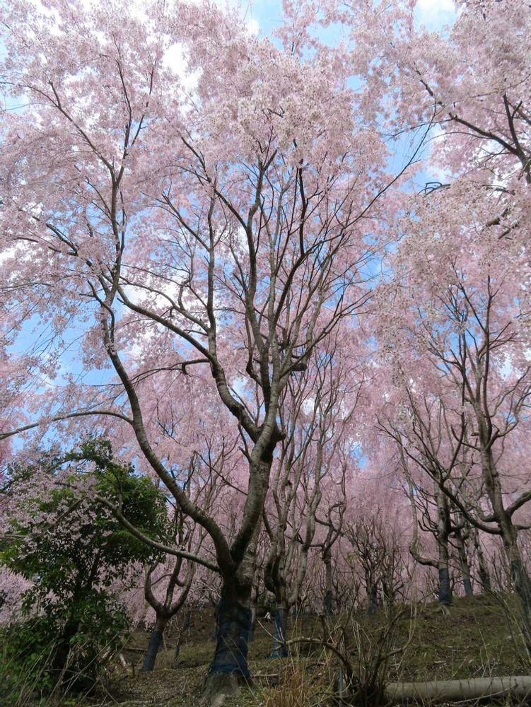 山の斜面に植えられた約300本のしだれ桜が満開で素晴らしかったです。
