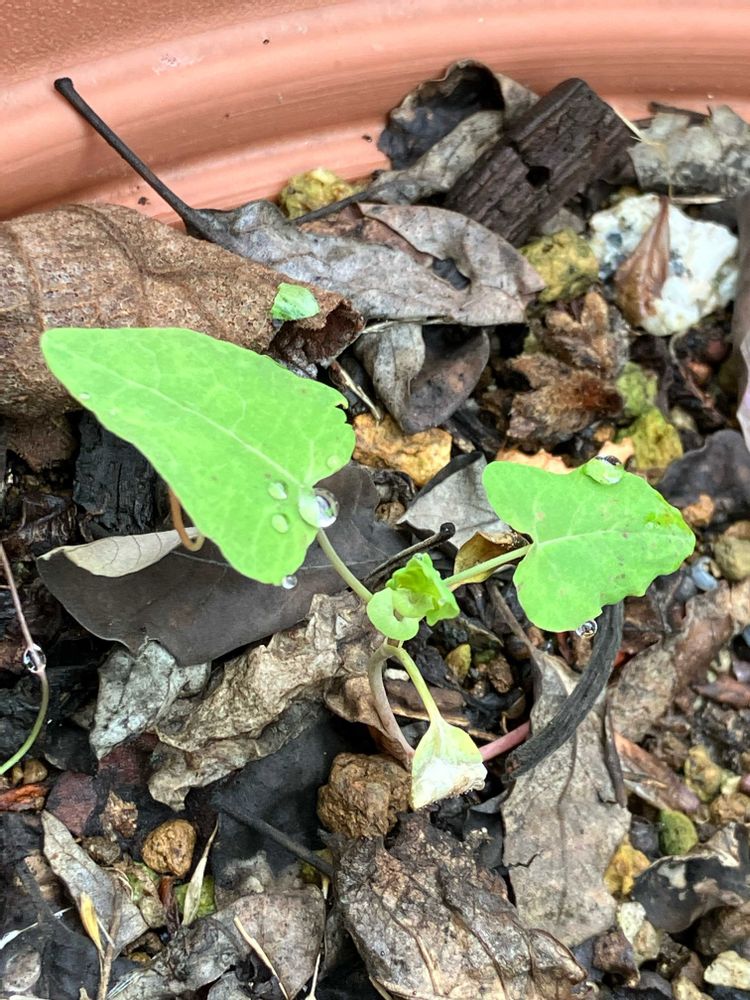 花友さんからもらったカラスウリの芽が出て育って3年目、今年も出てくるといいな。花はまだまだ先なんだろうけど。5年後とか?