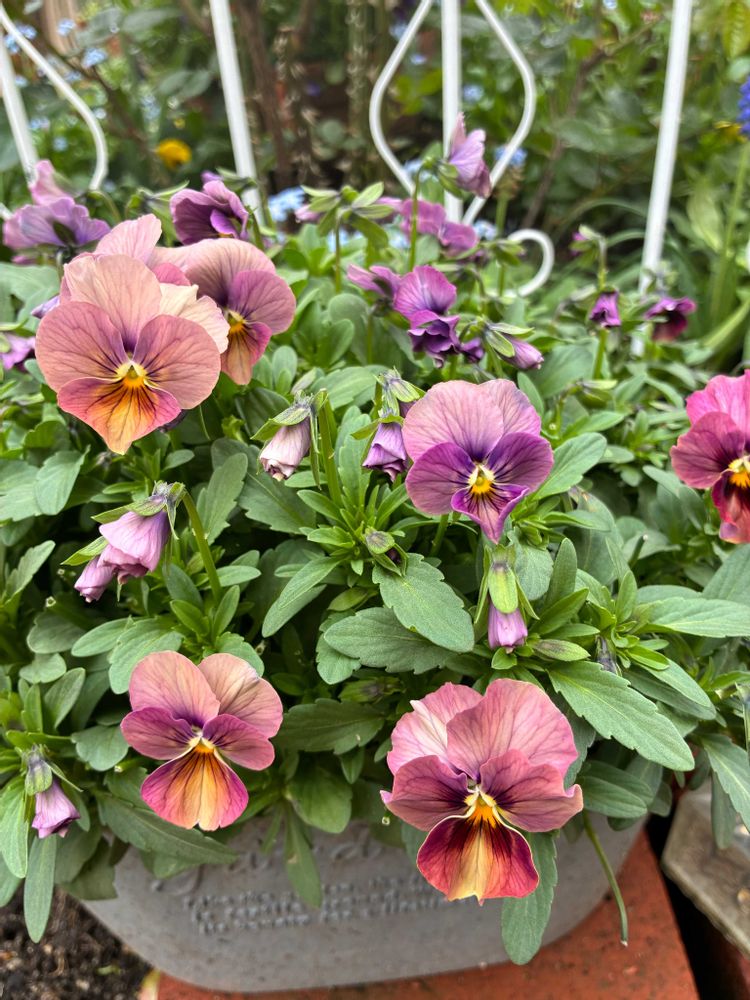 ビオラが、毎日咲き誇って賑やかに。あちこち植えてますが、今が一番咲いてるかな。