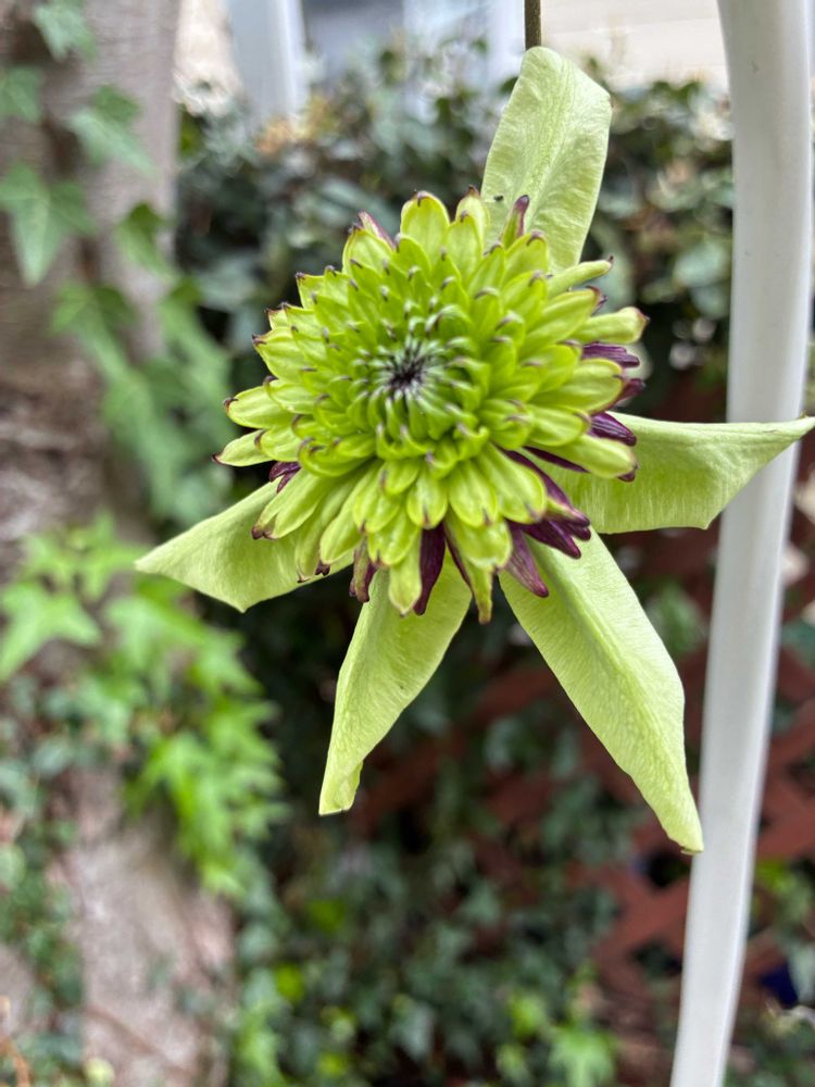 クレマチス・ビエネッタの今年初のお花。何だか、ちょっといびつだけど、葉っぱは、たくさんつけてるので、去年よりたくさん咲いてくれるかも?