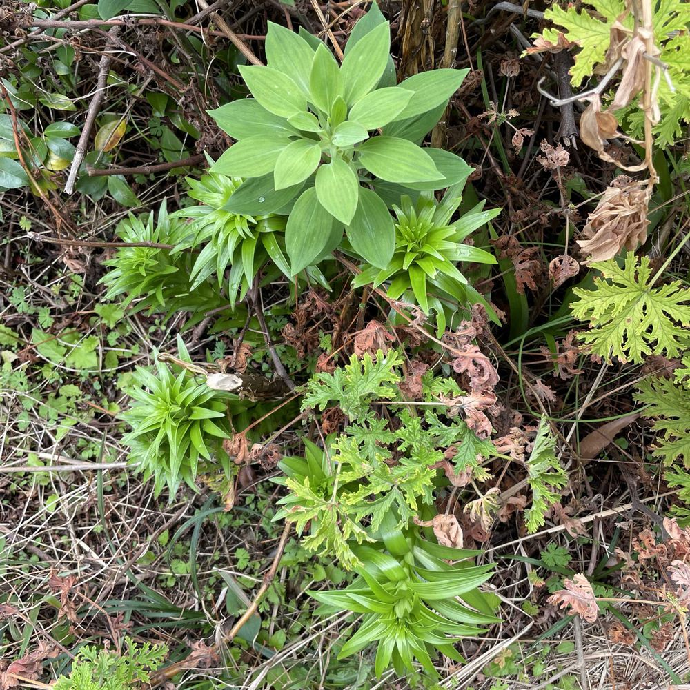 4.今年も姿を現したスカシユリ。アルストロメリアは常緑だが東の株はやや数を減らしたように見える。