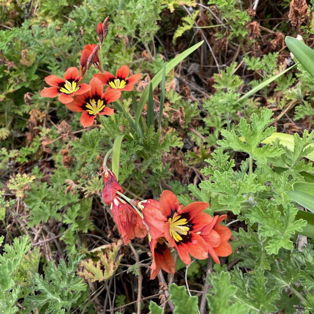 5.東の南寄りのスパラキシス。今年初開花の株だが、花数は今咲いてる中で一番多そう。